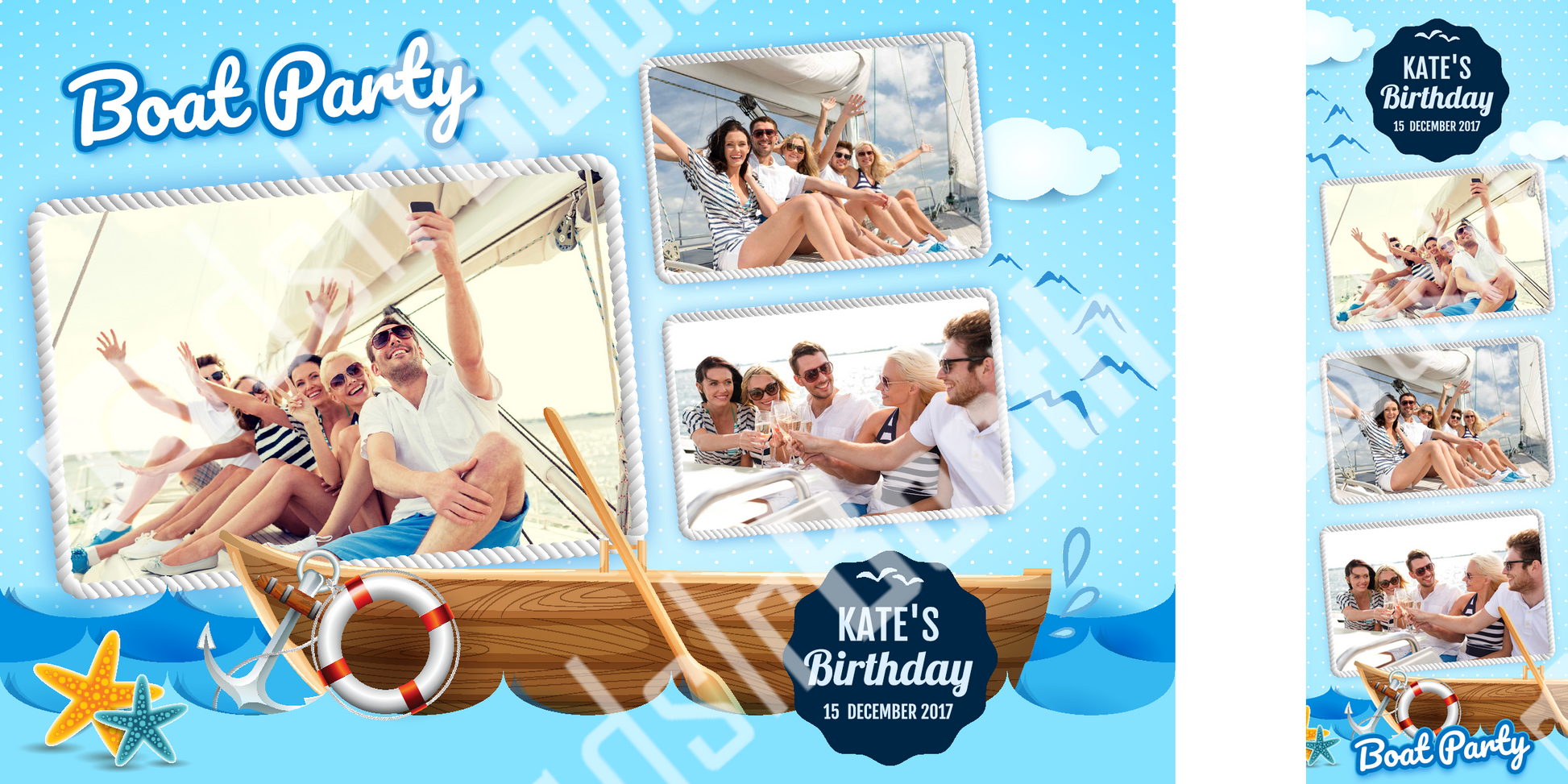 dslrBooth template with open water and a row boat. This design is very flexible and can be customized using the Template editor. Text is editable.