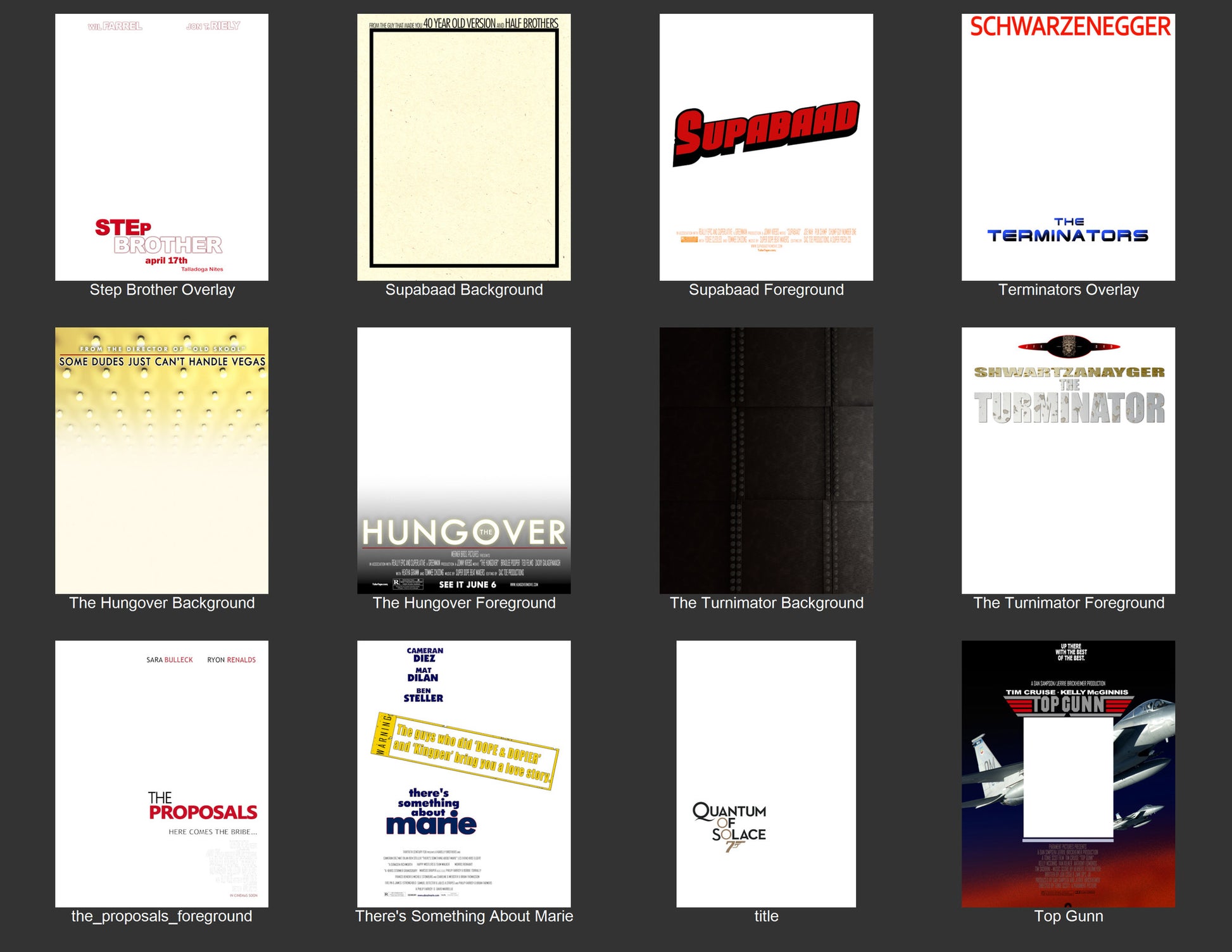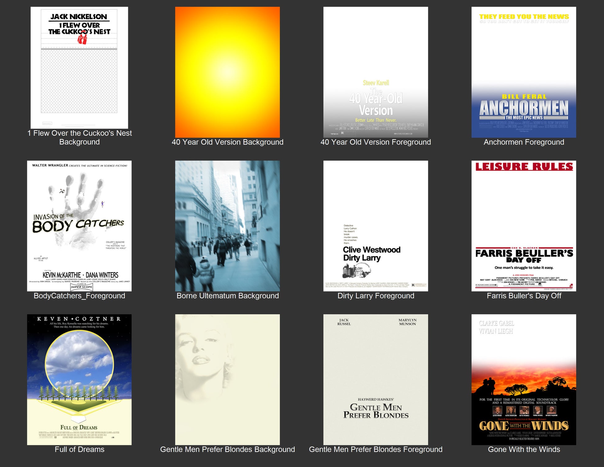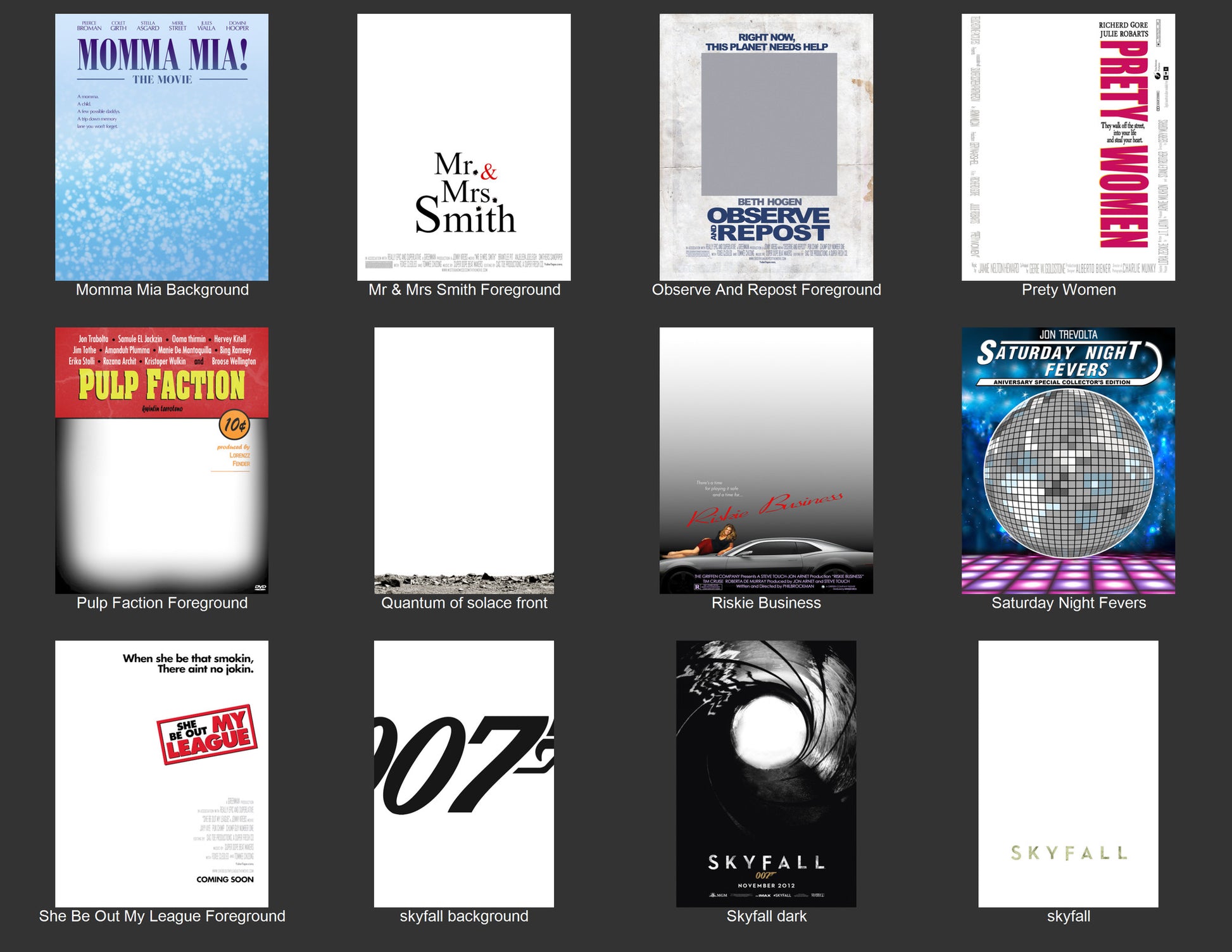 - 40+ popular movie posters with separate background & foreground layers